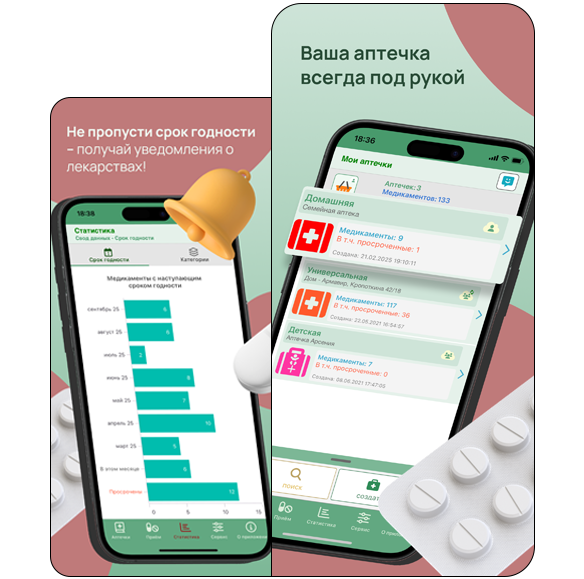 Получай уведомления до истечения срока годности лекарства — настрой расписание сам.